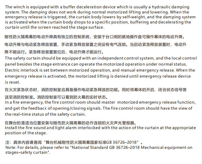 厅或舞台以外的区域,起到防止火灾蔓延的作用。防火幕幕体为刚性结构,是通过卷扬方式垂直升降的设备。
